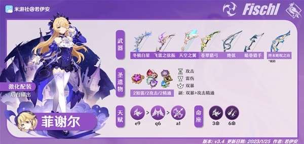 核心手法:挂雷后万叶扩雷,瑶瑶e激化,菲谢尔e锁面板,刻晴站场输出eqz。