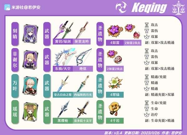 参考手法:刻晴eez挂雷→| 瑶瑶e→万叶eq→菲谢尔e/q→刻晴eqezzz→万叶e→刻晴eezzz | 循环。