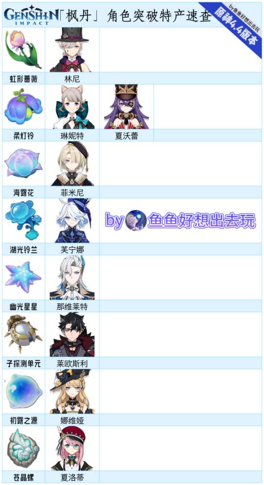 3.虹彩蔷薇、柔灯铃、湖光铃兰、幽光星星(苍晶螺、海露花、子探测单元、初露之源除外)可以纳西妲长e扫描采集(一次至多5个)