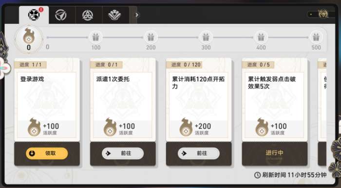 首先是推进主线,角色的同行任务,支线任务,提升开拓等级,版本活动