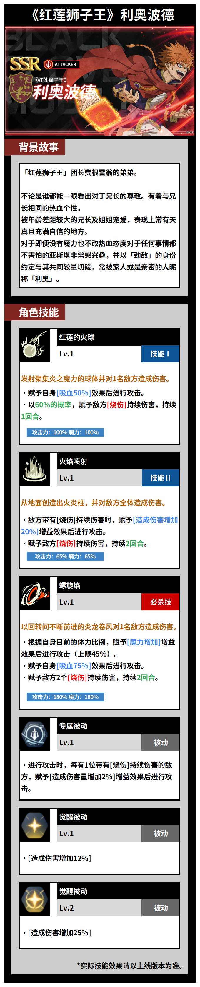 以上就是《黑色四叶草魔法帝之道》红莲狮子王利奥波德介绍,更多相关攻略,请关注pk游戏网更新!