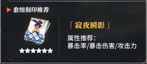 而且这个刻印带来的速度加成有很多,如果大家喜欢用套组刻印的话,这里选择的可以是寂夜瞬影,这个刻印相对来说是夜一一个比较经典的搭配,这个套组放在上面可以提升意义的整体暴击伤害,在暴击率上面也会有更大的触发概率,所以在战斗里面,如果想要让她的爆发能力更强,这个套组可以是更加推荐的,因为她在属性上面,其实爆发率以及伤害都是比较推荐提前去培养的,毕竟她属于一个强攻类型的角色,所以在攻击力上面是大家需要优先考虑的状态。