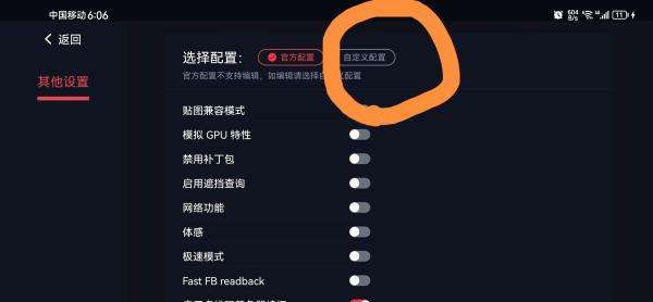 4、蛋蛋模拟器支持自定义配置,官方配置以骁龙888处理器为准,不同处理器可能需要微调设置。一般来说默认能玩而且流畅可以不调,如果卡顿或者闪退,那么需要自定义配置。