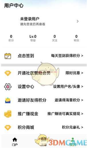 3、点页面底部的“我的”,即可前往注册登录入口。