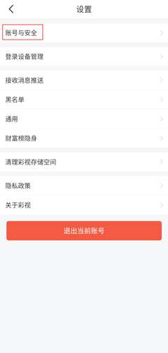 2、在设置页面点击账号与安全按钮;