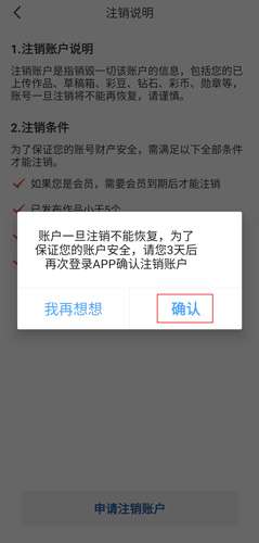 4、在注销说明页面中点击申请注销账户按钮;