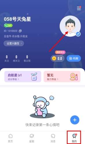 1、在知星APP“我的”页面内点击初始头像。