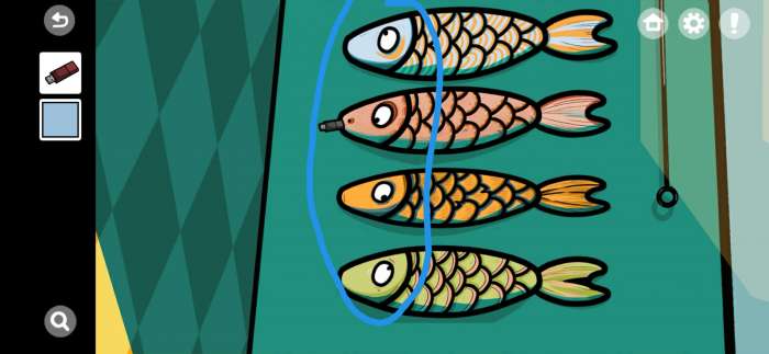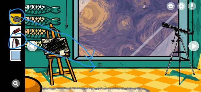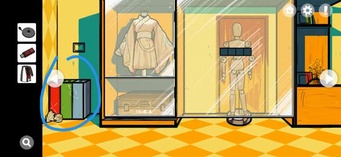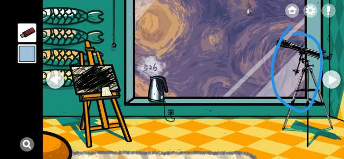 拉下幕布,点击墙上的鱼按照刚刚的鱼眼提示按左上,左下,右上,右上,左上,左下的顺序点击鱼标本得到一个U盘