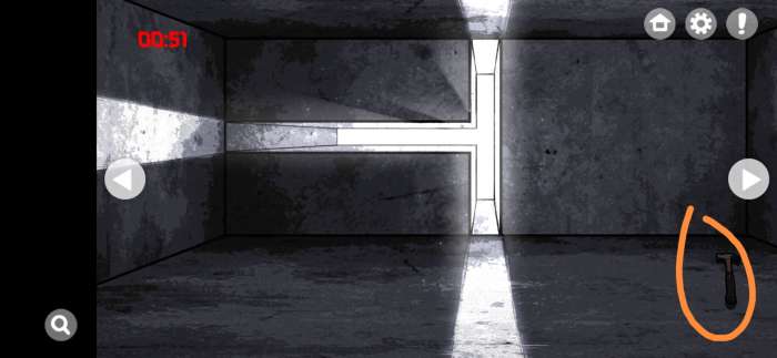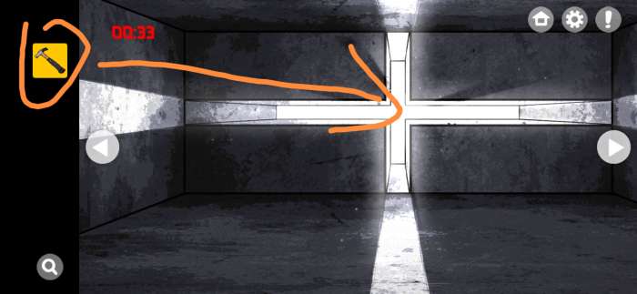 播放完视频后进入倒计时,拾取地上锤子,用锤子砸开十字的那面墙,进入下一个房间