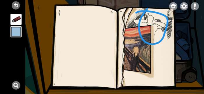 点击图中标记的柜子,按气球,月亮,蝴蝶结,向日葵,雪人,树的顺序输入密码,得到书签