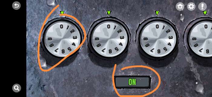 点击箱子,随便调整一下旋钮后按ON打开箱子,点击笔,向右拉动播放视频