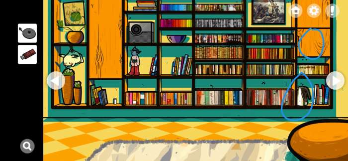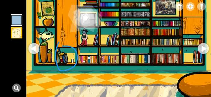 点击书架左下角书籍,书名上标注了书的顺序:红绿黑蓝。用书签分别放在这四本书上,使书签的左上角格子与书本的格子拼凑出数字:0895