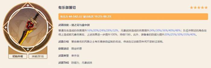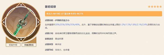 解析:这把武器的通用性很强,可以提升攻击力、暴击率和生命值,总的来说各种内容都是非常的好用的。