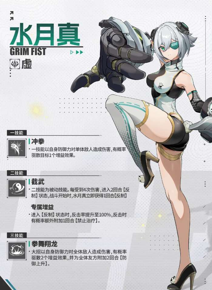要说水月真的玩法具备多样性,比如在pvp对战时,他有着足够的坦度,再加上高额的反击伤害,成为克制某些特定角色的利器。如果水月真在战斗的时候,施展技能的话,总是会发挥着巨大的作用,当然他还能够让敌人的优势瞬间化为泡影。因此玩家在组建阵容的时候,要根据水月真的特点搭配一些输出类型的异格者。毕竟水月真直接作为坦克,他能够抵挡敌人的攻击,这样的话就能够给后排的队友创造输出环境。在战斗的时候,只有双方搭配合理,才能够产生更好的效果。