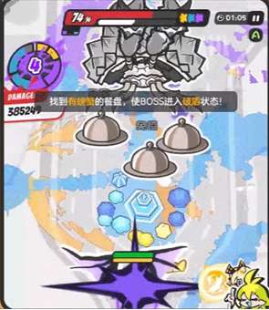 【榴冰蟹】拥有更高的护盾值,当【榴冰蟹】在战场中召唤出3个蟹宴餐盘并使用障眼法交换餐盘位置时,小伙伴们只需要攻击带有螃蟹的餐盘就可以使BOSS进入破盾状态。