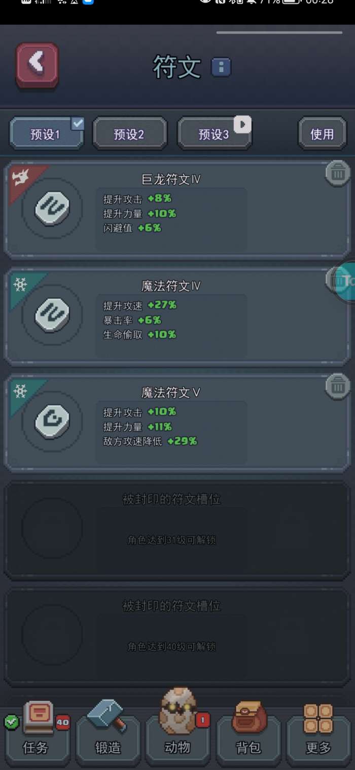 4、符文:带的是巨龙4、魔法45,主要考虑的是加攻击力量、生命偷取、加攻速减攻速的符文,我也是综合了其他大佬的搭配,比如双减攻速,双吸血之类的,我心疼符文石就没试其他的了,但吸血至少带一个魔法4。