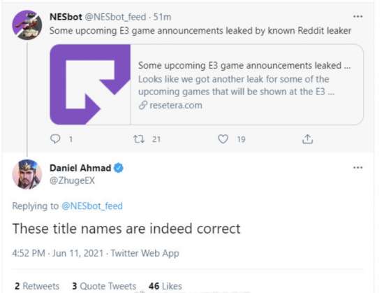 国外resetera论坛泄露了部分即将在E3展上展出的游戏,该泄露名单得到了游戏界人士“ZhugeEX”的证实。以下为详细名单: 《彩虹比利》(Rainbow Billy) 《Among us》 《Dolmen》 《死亡门扉》(De