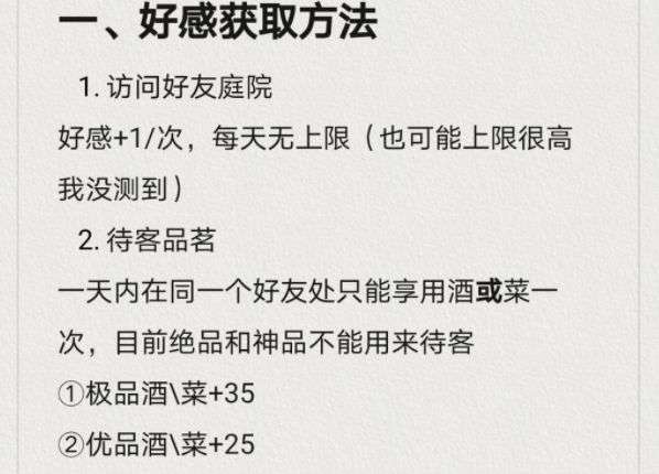 软件提交 专题合集 热门手游江湖悠悠好感度攻略2021 好感获取及升级心得,江湖悠悠好感度怎么得?江湖悠悠好感度等级怎么提升?好感度的提升方法多样,且升级好感度等级还能解锁部分系统玩法呢,具体获取内容下面就来告诉给大家吧~江湖悠悠好感度攻略2021一、好感获取方法1.访问好友庭院好感+1/次,每...