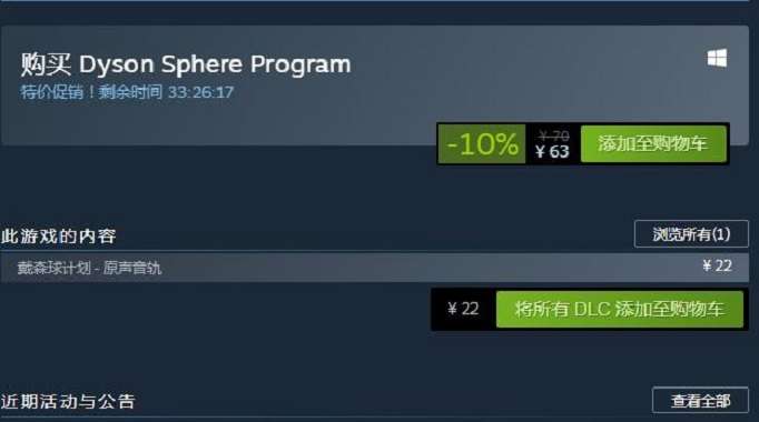 戴森球计划steam多少钱?相信大家近日都被一款基地建设的国产游戏给刷屏了吧,该游戏之前就已经在各大媒体宣传了,游戏也已经上架到了steam平台,下面一起来看下价格吧
