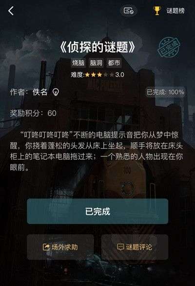 犯罪大师侦探的谜题答案大全 侦探的谜题答案分享,犯罪大师侦探的谜题答案是什么,相信不少玩家都不清楚,那么最新题目答案如何破解,下面为大家介绍犯罪大师侦探的谜题答案分享。犯罪大师侦探的谜题答案分享“叮咚叮咚叮咚”不断的电脑提示音把你从梦中惊醒,你挠着蓬松的头发从床上坐起...