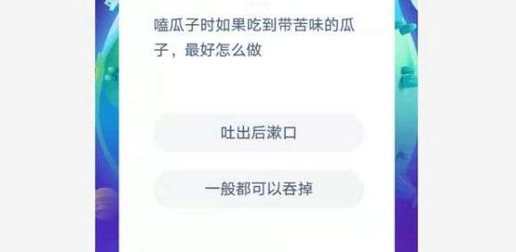 嗑瓜子时吃到苦瓜子 蚂蚁庄园吃了苦味瓜子怎么办,蚂蚁庄园在嗑瓜子的时候迟到苦味的瓜子怎么办,这个嗑瓜子也是日常生活中非常喜欢的一个体验,非常休闲的,很多的时候就是为了打发时间,下面就来介绍下嗑瓜子吃到苦味道的咋办。嗑瓜子时如果吃到带苦味的瓜子最好怎么做?正确答案:吐出...