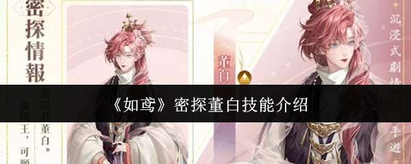 如鸢密探董白技能怎么样?如鸢新密探董白是全新地系神纪密探,定位强力辅助,与马超相性极高。普攻与天赋可为全队增攻,大招降低敌方攻防,队长技强化触发伤害。能将队友承受伤害转移给马超,并为其叠加冲劲,快速启动爆发。那么董白技能是什么呢?小编为你准