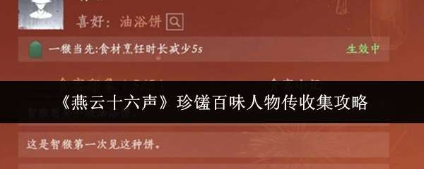 燕云十六声珍馐百味人物传怎么收集?燕云十六声新春「珍馐百味」人物传聚焦开封四大厨神与市井摊主。冯大哥掌千机妙赏摊,携墨门巧器贺岁;四位神秘厨神献南北名菜,可品佳肴、共厨互动。完成摊主好感任务解锁人物故事,还能触发美食奇遇,小编为你准备了一份