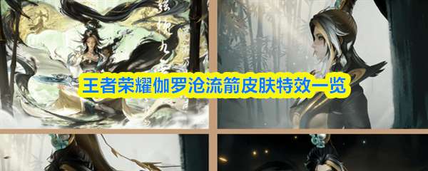 王者荣耀伽罗沧流箭皮肤以日升月落为主题,技能特效融合了墨竹、星轨、浪花等水墨元素。一技能切换时长弓由新月转为曜日,金竹摇曳。二技能释放时箭矢化为日月双轮,命中瞬间七星连珠天象显现。三技能法阵铺展后竹林掩映,中央潭水浮现上古女史画像,圆月渐升