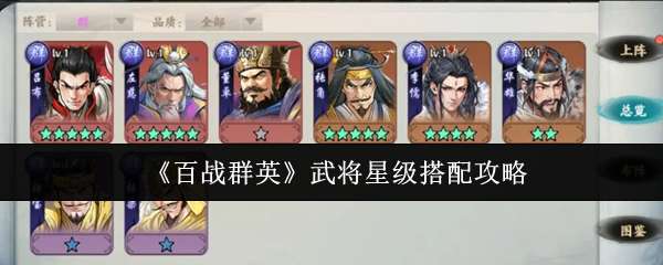 百战群英武将星级怎么搭配?《百战群英》中武将的选择以及星级养成都会对战斗表现、战局走向产生影响。百战群英武将星级搭配攻略分享,可以给玩家带来对于不同品质武将作用的认识,也可以帮助玩家更好的配置阵容,从而提升整体作战效率。游戏中的武将品质分为