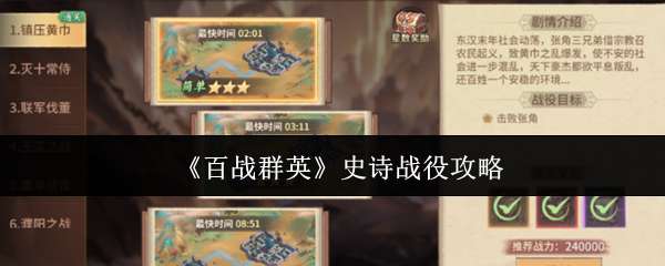 百战群英史诗战役怎么打?在群雄逐鹿的《百战群英》里,史诗级战役就是每一位主公展示谋略、证明实力的战场。许多玩家初入战役时容易迷茫,因此这篇百战群英史诗战役攻略分享,将帮助大家全面掌握战役规则与通关技巧。史诗战役有普通、精英和地狱三种难度,通