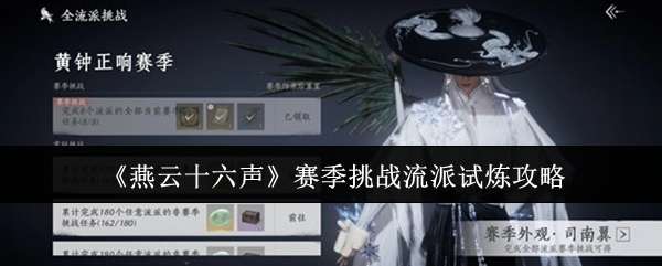 燕云十六声赛季挑战流派试炼怎么完成?燕云十六声黄钟正响”赛季挑战以全流派任务 + 专属奖励为核心,覆盖全流派,每个流派含 4 个目标,完成全流派赛季挑战可解锁 “我即是江湖” 限定徽章与称号,赛季结束后任务重置。那么这一赛季的流派挑战应该怎