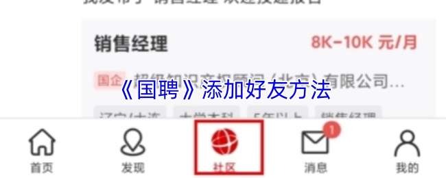 打开国聘APP,在社区浏览动态时点击感兴趣的用户头像进入其个人主页,点击“和Ta聊”发起交流,对方回复后即可成为好友;或通过搜索用户手机号、国聘号找到目标用户,点击“关注”并发送私信申请,待对方同意后完成添加。 国聘怎么加好友