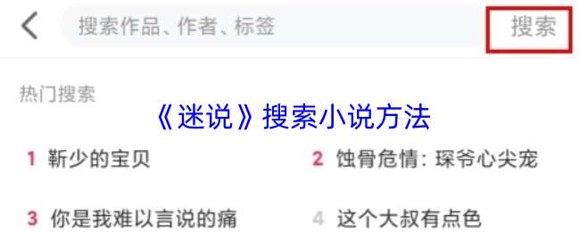 打开迷说app后点击顶部或底部的“搜索”图标,输入书名、作者或关键词即可查找相关作品,支持模糊匹配和热门推荐。搜索结果可按分类(如言情、玄幻)或状态(连载/完结)筛选,点击书籍封面进入详情页后可阅读或加入书架。 迷说app怎么搜