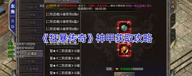 是在《狂暴传奇》中,神甲【☆麒麟·浴血甲☆】需角色达110级后,通过收集99个神甲碎片合成获取,碎片可通过声望商城兑换、神甲试炼副本或商城充值获得,合成后还可通过持续收集碎片提升装备至15级成长等级,增强生命、攻击、防御、魔防及守护技能效果