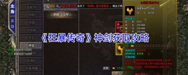 神剑【麒麟·浴血斩】需角色达110级后,通过收集99个神剑碎片合成获得,碎片可通过声望商城兑换、神剑试炼副本、商城灵符兑换或充值档位直接获取;合成后神剑支持15级成长,继续收集碎片可提升属性与专属技能“斩杀”效果。 《狂暴传奇》