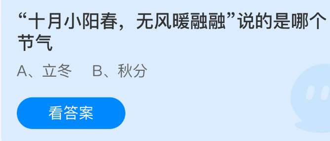 “十月小阳春,无风暖融融”说的是哪个节气?支付宝小鸡课堂开课啦!每天花一分钟答题赚饲料,喂喂小鸡就能贡献爱心啦!轻松又意义十足!2025年11月7日蚂蚁庄园的小鸡课堂题目正确答案是【立冬】,“十月小阳春,无风暖融融”描述的是立冬节气期间