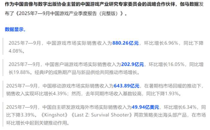 2025年Q3中国游戏市场收入超880亿,米哈游胜诉获赔11万!暗黑4国服上线、Switch2销量破千万,每日游讯带您速览游戏圈最新动态。