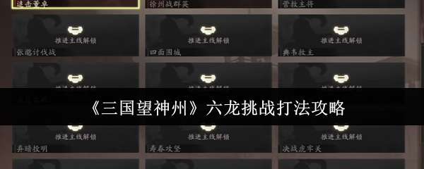 三国望神州六龙挑战怎么打?三国望神州六龙挑战,是游戏当中的一个高难度挑战关卡,其中包含有董卓和西凉铁骑、战略车轮战、吕布捕获战等等,每一个战局的战术都不尽相同,玩家需要见招拆招,才能出奇制胜,小编这一期就给大家整理出来了六龙挑战的攻略,希望