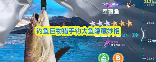 钓鱼巨物猎手钓大鱼隐藏妙招:一、使用并升级专属鱼饵,能显著提升目标鱼种的上钩概率与个体重量。二、把握特殊机遇,当遇到“秘境”或“大鱼吃小鱼”等事件时果断挑战,极易收获高星级巨物,助力排名飞跃。 钓鱼巨物猎手钓大鱼隐藏妙招