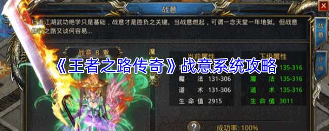 战意系统是角色在战斗中积累并释放的爆发机制,通过攻击、受击或使用特定技能积攒战意值;当战意槽满后,可手动激活“战意爆发”状态,在此期间大幅提升攻击、防御及技能效果,是挑战BOSS或扭转PVP战局的关键;玩家需通过符文、装备及称号等途径提升战