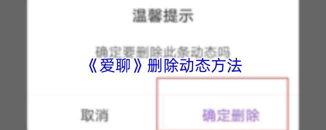 进入爱聊首页后找到“我的”选项进入个人中心,在个人中心里找到“动态”板块并点击进入,在动态列表中找到要删除的那条动态,点击进入该动态详情页,在详情页查找类似“删除”“删除动态”等标识的按钮,点击后系统会弹出确认删除提示框,点击“确认删除”,