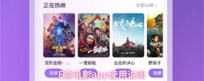 E票电影app怎么用,打开后进入观影页面可浏览正在热映、影院及待上映影片,还有每周电影推荐,选定影片点击购票,即可进入选座环节。选座界面先选观影场次,再在座位图挑可选座位,已售座位标紫色,选好点确认选座,跳转至订单确认页。 E票