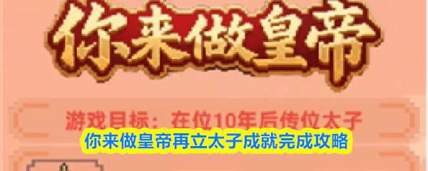 在文字模拟游戏《你来做皇帝》中,玩家的决策将触发不同成就与剧情。“再立太子”是其中一项关键成就,本篇攻略将详细解析其达成条件与步骤。以下就是小编带来的你来做皇帝再立太子成就完成攻略分享。 你来做皇帝再立太子成就完成攻略 首
