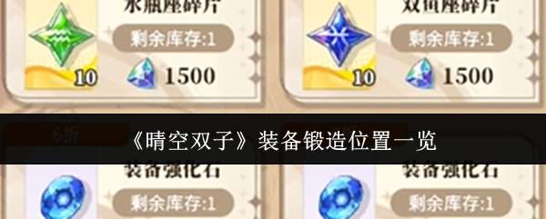 晴空双子装备锻造在哪里?实际上分为了多个锻造的地点,而最为主要的两个地方是伙伴管理界面和武器专属的锻造工坊,在这款游戏当中装备分为普通装备和专属的武器,而获得的每一种装备进行强化后都会有专门的属性和作战力量。除了普通的武器外,为每一名角色还