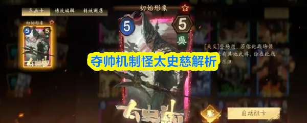 在夺帅游戏中,使用你的卡牌,在战场上进行1v1的战斗,获得更多分数以达成胜利。在这里可以展现你运筹帷幄的能力!下面给大家带来了夺帅机制怪太史慈解析,一起来看看吧! 夺帅机制怪太史慈解析 太史慈~卡牌效果如图,为什么称之为机
