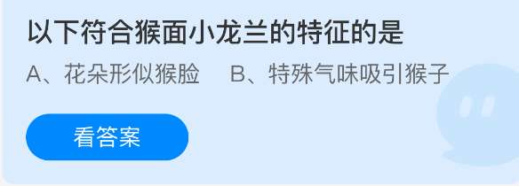 以下符合猴面小龙兰的特征的是?支付宝小鸡课堂开课啦!每天花一分钟答题赚饲料,喂喂小鸡就能贡献爱心啦!轻松又意义十足!2025年9月27日蚂蚁庄园的小鸡课堂题目正确答案是【花朵形似猴脸】,猴面小龙兰因花朵酷似猴脸被形象地称为“猴脸兰花”,其花
