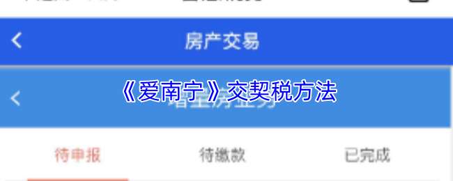 在爱南宁首页搜索“智慧税务”,点击进入后选择“房产交易”再点“增量房业务”,此时会显示“待申报”“待缴款”“已完成”三个栏次,若未申报则点击“待申报”填写信息提交,申报成功后在“待缴款”栏次完成缴税,若已申报未缴款则直接在“待缴款”栏次操作