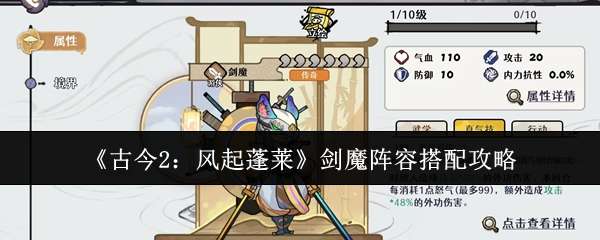 古今2风起蓬莱剑魔阵容怎么搭配?《古今2:风起蓬莱》作为一款深度融合国风美学与策略卡牌机制的武侠题材手游,凭借其独创的“真气—怒气”双资源系统与伙伴协同战斗设计,持续吸引大量玩家投入江湖历练。其中,剑魔凭借其无可替代的外功输出定位与极高的战