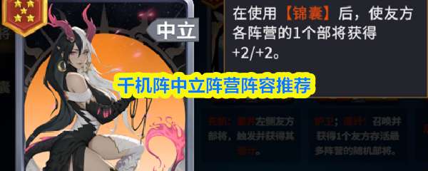 在幻想卡牌手游《千机阵》中,天、地、妖等多元阵营交织,构建出充满策略深度的世界。玩家需巧妙经营方能提升实力。下面给大家带来了千机阵现阶段各阵营常见阵容思路! 千机阵现阶段各阵营常见阵容思路 【1】中立 中立阵营
