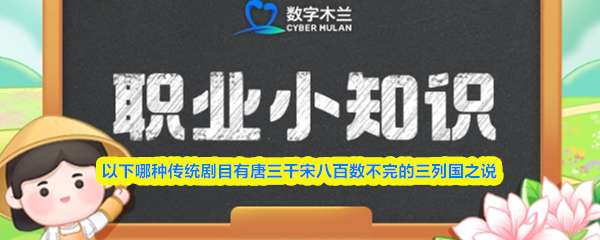 以下哪种传统剧目有“唐三千,宋八百,数不完的三列国”之说?【蚂蚁新村每日一题】2025年9月23日题目已发布!坚持答题,积累木兰币,即可加速小镇建设。答对本题,立即可享“产速+3/时”的加速奖励!今天正确答案是【川剧】。川剧的剧目十分丰富